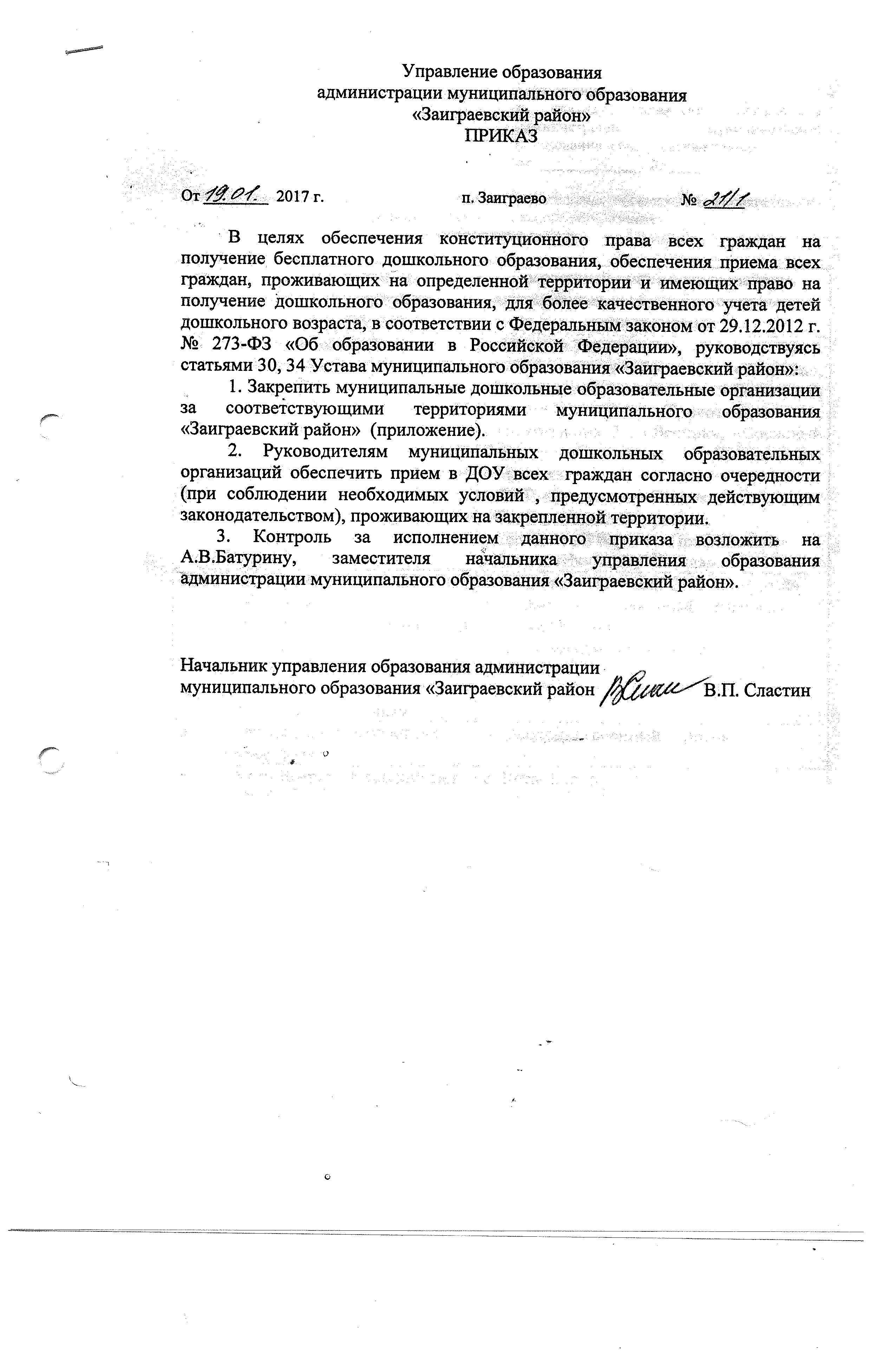 Распорядительный акт о зачислении ребенка в образовательную организацию